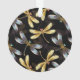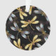 Patrón sin foco con oro, joyas, libélulas brillantes con las detalladas alas brillantes sobre fondo negro. Dragonfly de oro.
