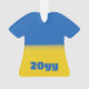 Paz de un lado y el año a la inversa en un adorno navideño azul y amarillo para mostrar apoyo por la paz en Ucrania.