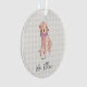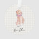Diseño de perro dorado acuarela en colores suaves, flores rosadas, fondo de cuadro de cuadros blanco con AMOR PERSONALIZADO, NOMBRE DEL PERRO en gris oscuro. Memorial de perro dulce, adorno navideño, nueva mascota familiar, recuerdo atemporal. Dulce, Colorido, Adorable. Mezcle y combine toda la colección de amantes de las mascotas / Pets Collections de TMCdesigns.