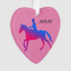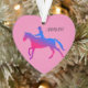 CABALLO DE CAMINO chica CON NOMBRE PERSONALIZADO EN ORNAMENTO DE CORAZÓN ROSA Y AZUL.