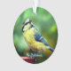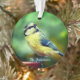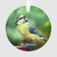 Foto personalizada de Ornament, pájaro de teta azul con pecho amarillo personalizado. ¡Ideal para todos! Texto sobre un fondo semitransparente sólo en el lado frontal!