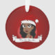 con un ilustracion de hermosa joven afroamericana con cabello ondulado y el gorra de Santa Claus; con plantilla de texto editable, diseño de vacaciones Navidades en un fondo rojo, por Radka Kavalcova
