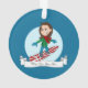 Diseño personalizado con ilustracion de un lindo chica sonriente snowboard; diseño deportivo de invierno extremo para niños con fondo azul, con plantilla de texto de personalizable para su nombre o mensaje