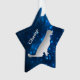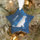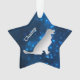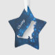 ¡Su perro puede tener su propio adorno de estrella personalizado en Navidad! Este adorno presenta una imagen de un Golden Retriever en silueta plateada rodeada de un cielo nocturno estrellado azul. El nombre de su perro u otro texto está en plateado coincidente a la izquierda de la imagen. La parte posterior del adorno tiene el mismo fondo de cielo estrellado, y texto para que usted lo personalice. Esto hace un bonito adorno conmemorativo para recordar a un perro que ha fallecido, también.