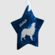 ¡Su perro puede tener su propio adorno de estrella personalizado en Navidad! Este adorno presenta una imagen de un perro pastor australiano en silueta plateada rodeada de un cielo nocturno estrellado azul. El nombre de su perro u otro texto está en plateado coincidente a la izquierda de la imagen. La parte posterior del adorno tiene el mismo fondo de cielo nocturno estrellado y texto para que usted lo personalice. Esto hace un bonito adorno conmemorativo para recordar a un perro que ha fallecido, también.