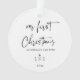 Este es nuestro primer ornamento de fotos de los recién casados de Navidad, que incluye una hermosa letra manuscrita con las palabras "Nuestra primera Navidad", con árboles de Navidad en el frente. Simplemente reemplaza la foto con la tuya y personaliza los nombres y el año. No se puede editar, cambiar, mover ni borrar la elegante frase de "Nuestra primera Navidad", árboles de Navidad, copos de nieve y otros elementos gráficos.