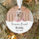 Honren la memoria de un perro querido con este amoroso adorno que dice: "Ya no más a mi lado, para siempre en mi corazón". Un conmovedor tributo a cualquiera que llore la pérdida de su compañero. Este ornamento personalizado le permite personalizar con el nombre y la foto de su perro, creando un hermoso sake para apreciar año tras año. Perfecto para colgar en el árbol de Navidad o mostrar como un recuerdo de amor incondicional y amistad leal durante todo el año.