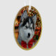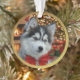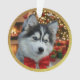 The front of the ornament features a cherished photograph of your pet (e.g., "Rocky," a husky puppy with a red bow).
