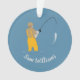 Ornamento navideño acrílico con temática de pesca con texto personalizable.