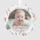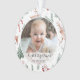Foto First Christmas Script Classic Rústic Reindeer & Santa Pattern. El ornamento de fotos de la primera Navidad de Cute Baby presenta un patrón rústico en los clásicos y tradicionales colores de Navidad rojo y verde. Edita en un minuto, carga tu foto favorita e ingresa tus datos. ¡Perfecto para tu pequeño nuevo!