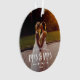 Encantador adorno navideño para las esposas recién casadas personalizado con una foto a cada lado. La Sra. & Mrs. está escrita en un guión de brocha audaz encima de dos flechas que apuntan a un corazón con una mirada dibujada a mano.