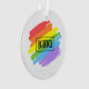 Esta obra de arte presenta un arcoiris colorido con las letras LGBTQ.