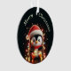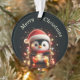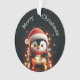 Un pingüino lindo con un sombrero de Santa se sienta envuelto en una cadena de luces Navidades de colores encendidos.