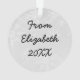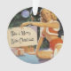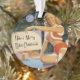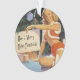 Ornamento navideño que presenta un ilustracion vintage de la década de 1950 de un chica de pinzas de bonito con un traje de santa con un cartel. Personalizar la espalda con tu propio sentimiento. ¡Retro genial!