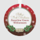 Adorablemente adorable adorno de marcos de fotos para celebrar la primera Navidad del bebé. Fondo rojo con copos de nieve y holly.
