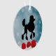 Silueta de caniche en negro sobre un fondo de vacaciones de invierno.