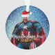 Este diseño presenta un retrato de Joe Biden usando un sombrero de Santa sobre un fondo azul y violeta.