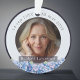 Honor a loved one’s memory with this elegant photo memorial ornament, featuring delicate blue hydrangea flowers with pink hints framing your cherished photo. The front includes your loved one’s name and dates, while the back displays another photo with the heartfelt message “Forever in our hearts.” A beautiful keepsake to remember and celebrate a life filled with love. Hanging on the Christmas tree or displaying year-round in remembrance.