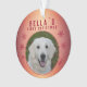 Primer Ornamento de Fotografía de Cachorro Rojo de Nochebuena de Navidad. Copos de nieve rojos y fondo degradado en color rojo y naranja. Personalice el adorno con la foto, el nombre y el año de nacimiento de su perro - inserte su foto de cachorro favorita. Puede usar este ornamento personalizado para cualquier mascota. Un gran descanso para el dueño de un perro.