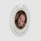 Marca la primera Navidad de tu bebé con este adorno que incluye tu foto favorita de tu pequeño en un círculo de falsa nieve de oro sobre un fondo blanco. Personaliza más con tu texto. Al revés, el fondo es blanco y está recubierto de falsa nieve dorada.