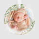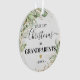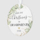 Sorprende a tus padres con este adorno de árbol de navidad sentimental con un fondo blanco simple, un elegante eucalipto verde acuarela, falsos acentos de Relieve metalizado de oro, el dicho "nuestra primera navidad como abuelos, y el año. Al revés hay una atesorada foto de su nieto.