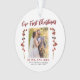 Primera Navidad como el adorno de árbol de keepsake único del señor y la señora casada con ramas de bayas rojas, tu foto personalizado y texto de escritura de tipografía moderna roja. ++++++++ Puede ser un regalo hermoso para los recién casados.