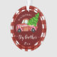 Camión rojo retro divertido con árbol de Navidad. Camión temática de Candy. Primera Navidad como hermano mayor con cita. Nombre del bebé y opción de texto de fecha de nacimiento en la parte posterior del ornamento.