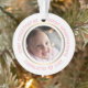 Este moderno ornamento navideño personalizado presenta un elegante diseño de oro falso. Personalice el nombre, año y foto. Es de doble cara. Esta plantilla funciona mejor con fotos en formato de paisaje con el tema en el centro.