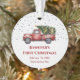 ¿Estás buscando el recuerdo perfecto para celebrar la primera Navidad de tu bebé? Este adorno personalizado es la respuesta. Captura este hito de una vez en la vida con nuestra hermosa y bilateral "Primera Navidad del Bebé con el ornamento fotográfico de las estadísticas del nacimiento". Esto no es sólo una decoración, es un recuerdo preciado que puedes colgar en tu árbol año tras año. En el lateral 1 se encuentra un encantador camión rojo vintage de color agua con un árbol de Navidad situado en un entorno festivo de nieve. Personalice este lado con el nombre y la fecha de nacimiento de su bebé para hacerlo único. La segunda cara está reservada para la foto más atesorada de tu pequeña. Simplemente sube tu imagen favorita para completar este keepsake personalizado. Este adorno es la solución ideal para los padres que desean un recuerdo especial, o para cualquiera que busque un regalo reflexivo y personalizado para una familia que celebra la primera temporada navideña de su bebé. Crea tu mantenimiento único hoy y recuerda este año especial para siempre.