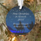 Primera plantilla de adorno de Navidad en el cielo, un dulce regalo para alguien que ha sufrido la pérdida de un ser querido el año pasado. Se puede personalizar con un nombre y cargar un retrato en el reverso. Azul profundo con un fondo de estrellas y hombres sabios sobre camellos.