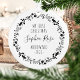 Este diseño presenta una corona en blanco y negro de adornos navideños, bayas y follaje, rodeando las palabras "Mi primera Navidad" en un llamativo tipo de letra negro. Personalizar el frente con el nombre del bebé en escritura a mano, junto con el nombre de la familia y el año. Reemplace fácilmente la foto de muestra en el reverso por una foto cuadrada favorita del recién nacido. (Un fondo claro funciona mejor con la corona negra y blanca, o borra la corona si lo prefiere.)