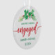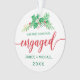 Para su primera Navidad, este elegante ornamento navideño presenta una espiral de color hueco pintada en acuarela. Debajo se lee en la falsa tipografía de escritura moderna de oro "Nuestra primera Navidad comprometida" con sus nombres y año para personalizar. La parte posterior del adorno incluye una foto para que cambies a la tuya. ¡Buena suerte en tu futuro boda! Diseñado por la artista ©Susan Coffey.