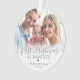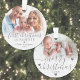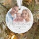 Primera Navidad Como Padres Recién nacido 2 Ornamento De Foto. Celebra la alegría de tu primera temporada de vacaciones como nuevos padres con este elegante adorno personalizado. El frente presenta una preciada foto de su bebé o un momento dulce de los padres con su recién nacido, bellamente adornado con la frase "Primera Navidad como padres" en caligrafía de escritura y una fuente serif clásica, ahora en suaves tonos grises para un aspecto atemporal. El año también se muestra en gris para un toque cohesivo y personalizado. La parte trasera ofrece espacio para una segunda foto —perfecta para otra instantánea de tu bebé o un momento familiar significativo— emparejada con "Feliz Navidad" en el mismo delicado guión gris y el año en el fondo. Los acentos grises del corazón y un suave efecto blanco sombrío en la parte inferior de cada foto añaden calidez y elegancia. Tanto el tipo de letra como los colores del corazón se pueden personalizar para que se adapten a su estilo. Un gran placer para celebrar tu primera Navidad como familia y una bella adición a tu decoración de vacaciones.