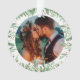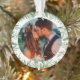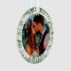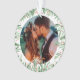 El adorno "Just Married" de las Partes Temáticas es un hermoso diseño de keepsake boda, con tu foto boda favorita. Nuestro adorno boda presenta una elegante tipografía de escritura dorada festiva con acentos vacacionales y está enmarcado con vegetación acuarela y pequeñas bayas rojas. boda Keespake. Primera Navidad