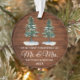Moderno y elegante acuarela Pine Trees Nuestra primera Navidad como el Sr. y la Sra. Boda Couple Ornament - Rústica Madera de campo