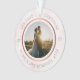 Este adorno navideño personalizado presenta un diseño moderno de oro falso rosa sobre un fondo falso de mármol rosa. Personalice el nombre, año y foto boda. Esta plantilla funciona mejor con una foto en formato de paisaje con la pareja en el centro.