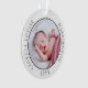 Personalizar este adorno con tu propia foto, nombre del bebé y estadísticas de nacimiento por una adición personalizada a tu árbol. El nombre, la fecha, la hora y las estadísticas de nacimiento del bebé se muestran al fondo del adorno.