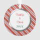 Este adorno de manga de vacaciones muestra tu propia fotografía dentro de un marco de rayas de caramelo de Navidades rojos y blancos que tiene un revestimiento de plata interior. Un cartel verde sostiene tu texto personalizado; ¡haz que diga lo que quieras! El otro lado tiene el mismo borde de banda con texto adicional en el interior blanco. Un elegante regalo de mantenimiento para recién casados o cualquier pareja.