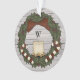 Primitive Country Farmhouse Holly Monogram Wreath Ceramic Ornament - Una sencilla casa de campo Navidades de campo están todos cubiertos para las vacaciones. La corona está adornada con una proa borgoña, bayas de pipa, velas gruesas, estrellas de mostaza y latas de dulces. Lo que hace que este adorno sea exclusivo suyo es que presenta su inicial. El ornamento sería un regalo encantador y atento. Puedes personalizar fácilmente tu ornamento usando la impresionante herramienta de diseño de Zazzle. El ornamento forma parte de una colección.