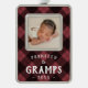 Celebra su primera Navidad como abuelo con este adorno de fotos dulce que presenta una foto de un bebé enmarcada por una clásica chaqueta de búfalo roja y negra. "Promocionado a los Gramps" aparece debajo de la inscripción en letras blancas rústicas, junto con el año.
