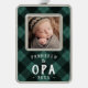 Celebra su primera Navidad como abuelo con este adorno de fotos dulce que presenta una foto de un bebé enmarcada por una clásica manta de búfalo verde y negro. "Promoted to Opa" aparece debajo de las letras blancas rústicas, junto con el año.