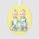 Invitación de parto o embarazo. Un adorno navideño con temática azul y verde, con dos gemelos en azul y verde. Invitación de gemelos. Personalizado la fecha de vencimiento en la parte posterior.
