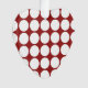 Las filas de puntos de polka blanco en negrita sobre un fondo rojo forman un patrón geométrico elegante. Imagen creada digitalmente. Copyright © 2013 Claire E. Skinner. Todos Los Derechos Reservados.