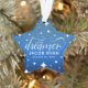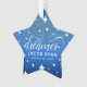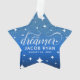 ¡Nace una estrella! Celebra el primer año de ese nuevo paquete de alegría con este adorno de Navidad, que incluye las palabras "pequeño soñador", ambientado en un elegante guión fluido sobre un patrón repetido de estrellas, cercano y lejano, que reluce contra un fondo del cielo azul medianoche que se transforma en negro. El reverso muestra un diseño idéntico. Personalice el nombre y la fecha de nacimiento del bebé. Diseño © W.H. Sim, todos los derechos reservados. Ver más en zazzle.com/expressionsoccasions