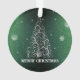 Decore su árbol esta temporada navideña con un Purpurina de árbol de navidad y un adorno navideño de copas de nieve. El diseño ornamental incluye un elegante árbol de Navidad compuesto por elegantes rollos, adornados con copos de nieve en un brillante fondo purpurina. También hay artículos de regalo y de vacaciones disponibles con este diseño.