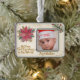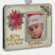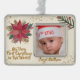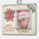 Personalizado Enmarcado Ornamento (Horizontal), Tono plateado Mi primer ornamento navideño de foto navideña, para su nuevo paquete de alegría. Cuenta con una flor de poinsettia roja y hojas doradas con bayas rojas. Personalizar con el nombre de su hijo. También puedes cambiar la frase "Mi primera Navidad en este mundo" si lo deseas. @Miri Creations - Creado sólo para ti pensando en ti. Todos Los Derechos Reservados.