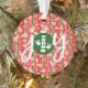 Características del diseño nuestro diseño del ornamento del navidad de la ALEGRÍA de la quiropráctica en un fondo rayado festivo del día de fiesta.