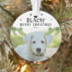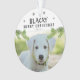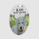 La Rama De Pinos De Fotografía De Perro Cute Copos De Nieve Con Ornamento De Feliz Navidad. Ramas de pino verdes y copos de nieve negros. Añade la foto, nombre y año de tu perro. Puede usar este ornamento personalizado para cualquier mascota. Una gran fiesta mascota.