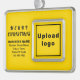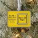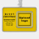 Feliz Navidad! Ornamento con los textos de la Feliz Navidad, el nombre de su negocio o empresa, logotipo, dirección y número de teléfono. Los diseños son textos negros sobre fondo amarillo y sobre forma rectangular de formato paisajístico enmarcado. Ornamento para decorar el árbol de Navidad en tu tienda, tienda u oficina. Ornamento para saludar visualmente a sus clientes esta temporada de vacaciones y para anunciar su negocio o promocionar su marca. Personalizar y úselo para crear conciencia de marca. Compruebe la apariencia después de cargar el logotipo y escribir textos. Si la apariencia le resulta agradable, puede realizar su pedido ahora. Si necesita cambiar el tamaño y mover el logotipo y los textos para que encajen en este ornamento, por favor cambie la herramienta de diseño. También puede realizar otros cambios según sus preferencias en la herramienta de diseño, como cambiar el color de fondo, el color de la fuente y el estilo de fuente. Feliz Navidad! Te deseo más ventas esta temporada de vacaciones.