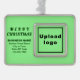 Feliz Navidad! Ornamento con los textos de la Feliz Navidad, el nombre de su negocio o empresa, logotipo, dirección y número de teléfono. Los diseños son textos de color verde oscuro sobre el fondo verde claro y sobre la forma rectangular de formato paisajístico enmarcado. Ornamento para decorar el árbol de Navidad en tu tienda, tienda u oficina. Ornamento para saludar visualmente a sus clientes esta temporada de vacaciones y para anunciar su negocio o promocionar su marca. Personalizar y úselo para crear conciencia de marca. Compruebe la apariencia después de cargar el logotipo y escribir textos. Si la apariencia le resulta agradable, puede realizar su pedido ahora. Si necesita cambiar el tamaño y mover el logotipo y los textos para que encajen en este ornamento, por favor cambie la herramienta de diseño. También puede realizar otros cambios según sus preferencias en la herramienta de diseño, como cambiar el color de fondo, el color de la fuente y el estilo de fuente. Feliz Navidad! Te deseo más ventas esta temporada de vacaciones.